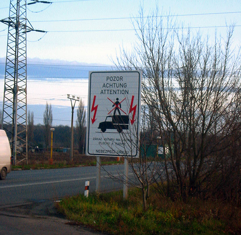 Apparently, the message is: “Don’t stand on the roof of your car, or you will be electrocuted by high tension wires.”