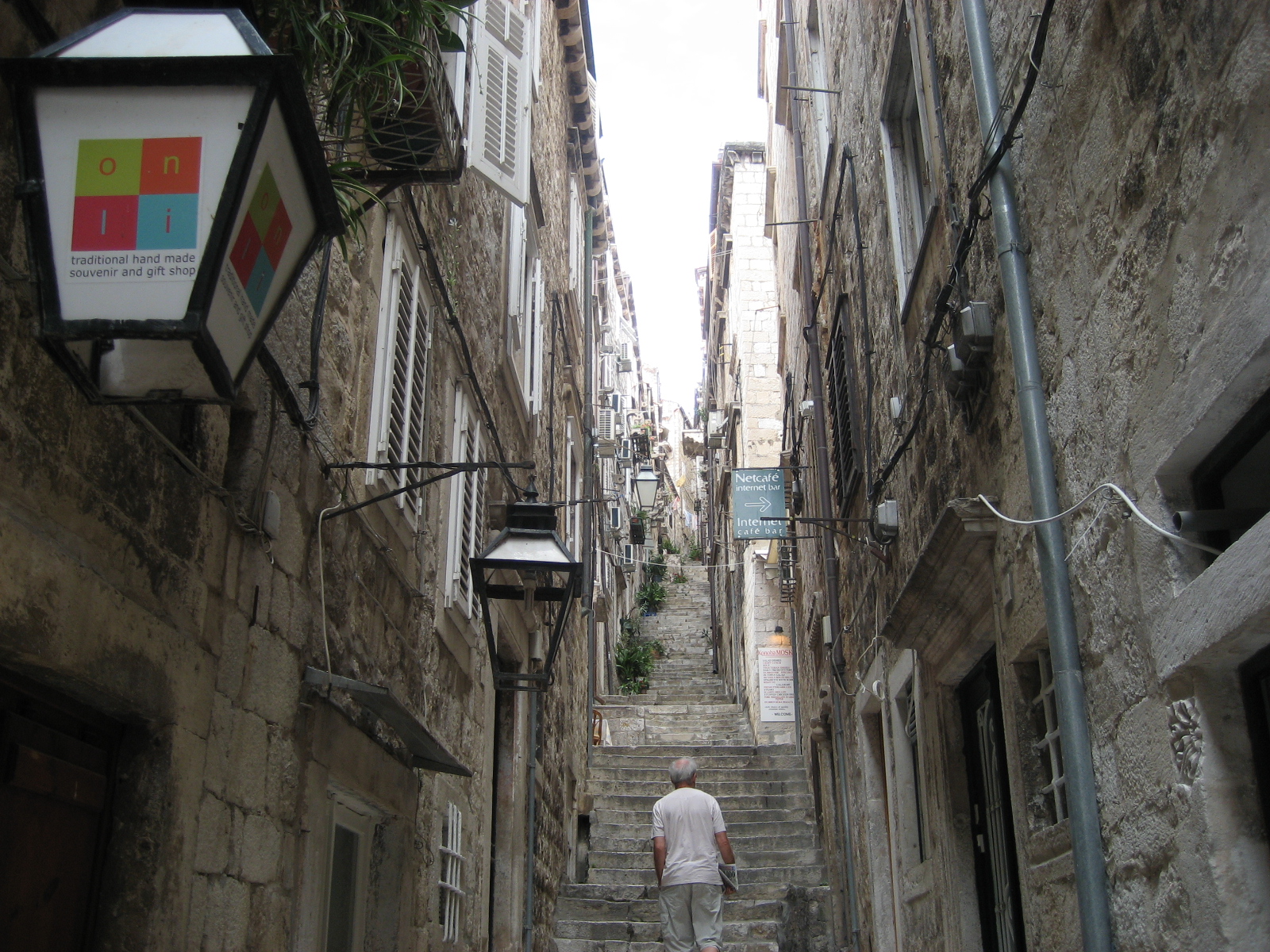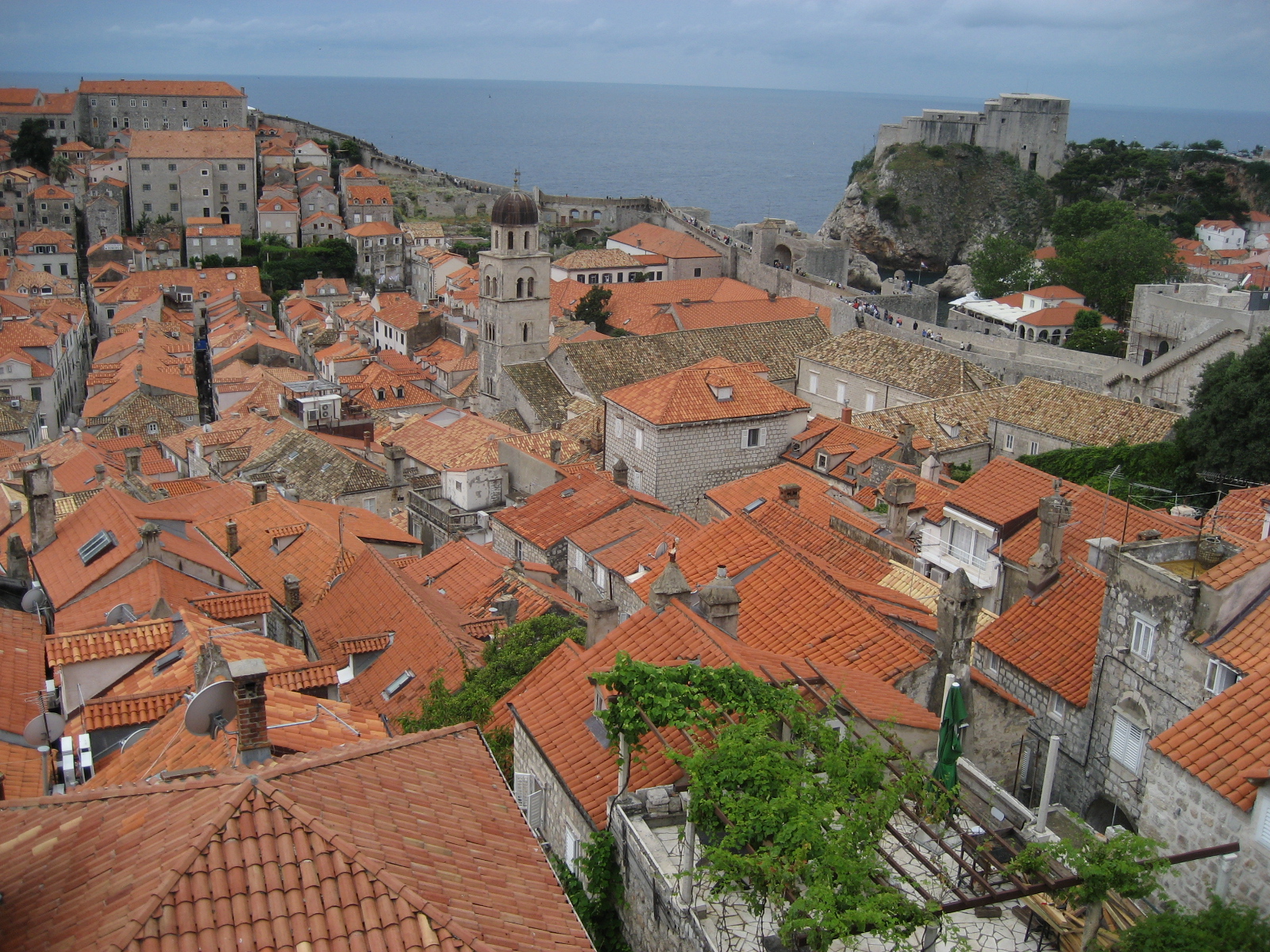 We had read that Dubrovink had lots of sunny days and not much rain, so when it rained there, as it had in Venice, we started feeling like Joe Btfsplk, the Li’l Abner character who went around with a raincloud always over his head. Fortunately, when we were on the walls, it was only drizzling, and that probably did keep down the crowds.