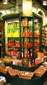 We walked out the other side of the church and into a street of souvenirs, and discovered that Corfu is well known for its kumquat products. You can get almost anything imaginable made from kumquats: kumquat jelly, kumquat liqueur (which I tried), kumquat candies… we bought some kumquat nougat to chew on.