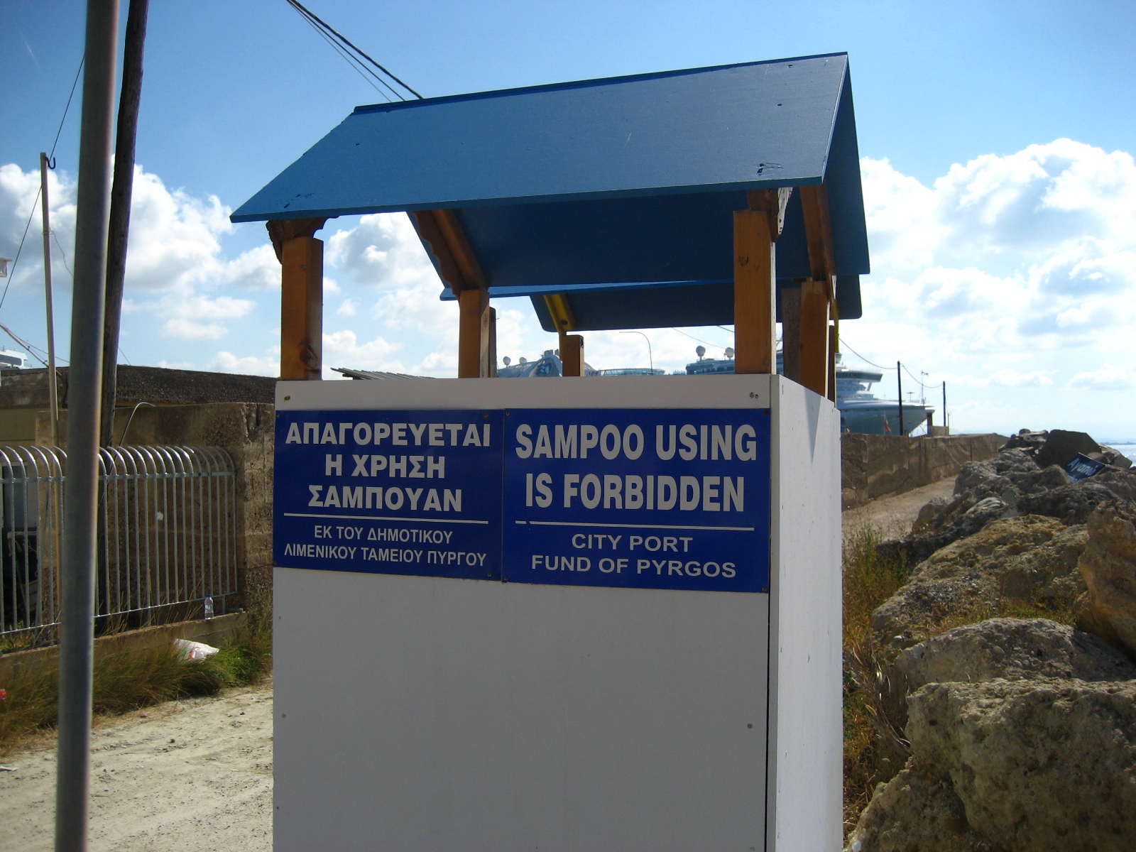 Away from the shopping area there was a small beach, on which we saw this sign – Don’t use that sampoo:
