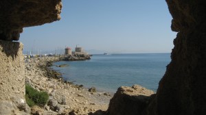 We had no arranged tour in Rhodes. Our ship docked at the north end of the island, within sight of Turkey, which is only a few miles to the north of the island. We were also within walking distance of the walled medieval city of Rhodes, and so we walked into town in the morning. The medieval city was built by the Knights of St. John (also known as the Knights Hospitaller). The island belonged to the Byzantine Empire from the First Crusade until the city was taken by Suleiman the Magnificent in 1522. Today the medieval city is a – you guessed it – UNESCO World Heritage Site. I think this was number seven for the trip (after Venice, Dubrovnik’s old city, Corfu Town, ancient Olympia, the Acropolis and Delos). Also, this was the third place we visited that was once the site of a wonder of the ancient world. The Colossus of Rhodes stood next to the harbor in ancient times – but for only about 50 years before it was felled by an earthquake.