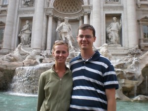 After our stop there, we turned north and went to the Trevi Fountain. Here is a cute couple standing in front of it:
