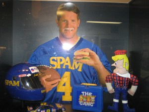 Brett Favre was also there, eating a burger, with a milk mustache, and wearing a Spam jersey that he had signed: